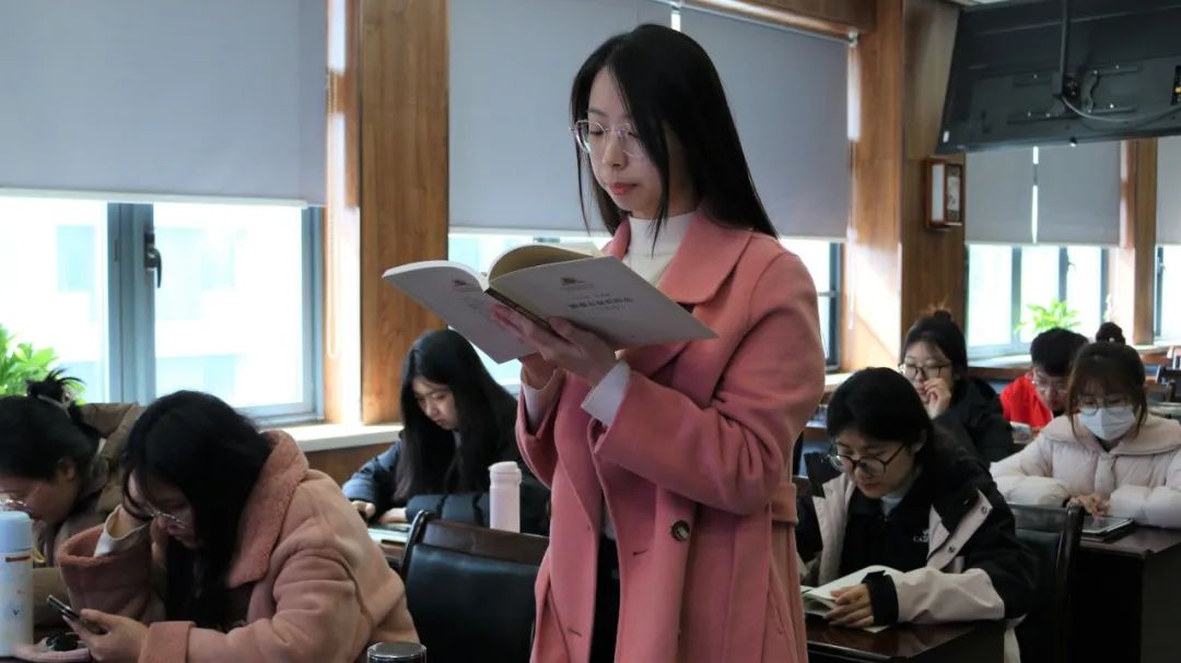 活动分为背景解析、文本研读与观点研讨三部分。在背景解析环节,张湉怡首先概览了1843年德国的社会历史背景,接着梳理了青年马克思的思想转向历程,强调该著作对于我们理解马克思从唯心主义转向唯物主义具有关键作用。在文本研读环节,李金腾结合文本指出,马克思通过批判黑格尔“国家决定市民社会”的唯心主义逻辑,提出“家庭和市民社会是国家现实基础”这一唯物论论断;王心茹详细分析了书中对私有财产与政治制度关系的揭示,指出马克思这方面的相关思想为接下来唯物史观的形成开辟了道路。在观点研讨环节,韩博渊从法哲学维度解析了马克思对黑格尔“逻辑泛神论”倾向的批判,突显了马克思法哲学思想的唯物主义转向;高文静则重点探讨了经典文本的现实启示,她通过对马克思“国家基础源于社会”这一观点的解析,说明了构建社会参与渠道对公权力监督的重要性,强调了社会主义制度的人民性特征。