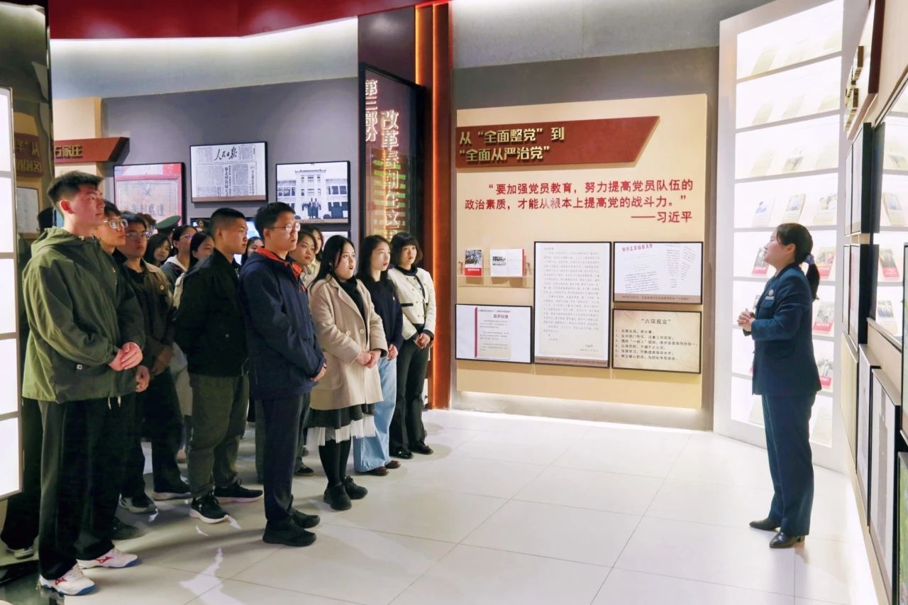 陆军工程大学教员李琳琳带领师生参观大思政教学实践中心,学生通过泛黄的照片、珍贵的影像,学习党领导下的人民军队发展历程以及河北省悠久深厚的红色文化,深刻感悟共产党人用生命和鲜血铸就的信念与忠诚、永远坚守的初心和使命。