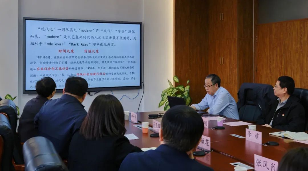 李海新教授作《以中国式现代化全面推进中华民族伟大复兴》的专题报告。他通过解析现代化的多维内涵,阐释中国式现代化的理论创新与实践突破,号召与会人员以“时不我待、只争朝夕”的奋斗姿态投身伟大实践,为联学共建注入强大理论动能。