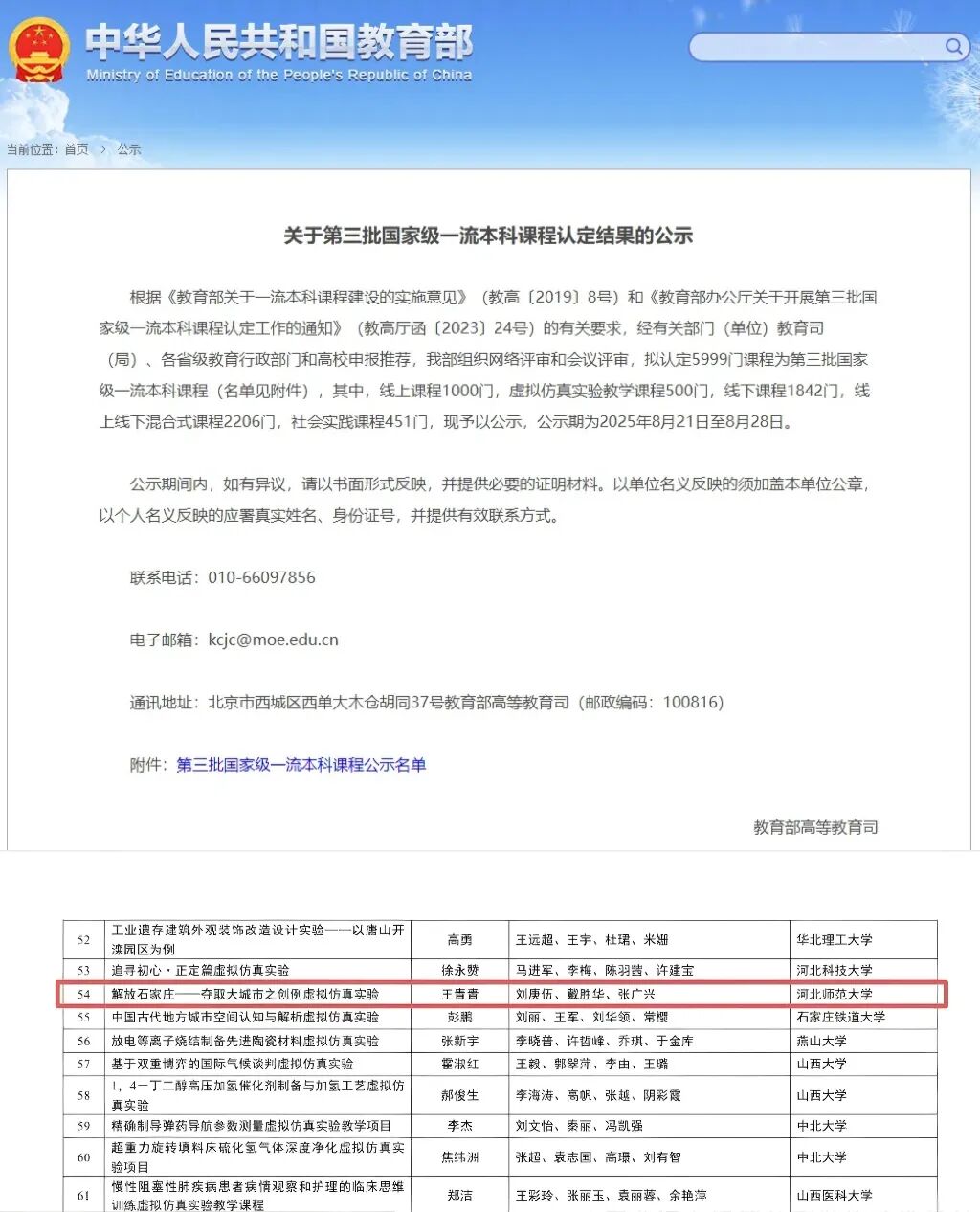 近日,教育部公示了第三批国家级一流本科课程认定结果名单,永利 王青青、刘庚伍、戴胜华、张广兴教学团队申报的《解放石家庄——夺取大城市之创例虚拟仿真实验》课程入选国家级一流本科课程。