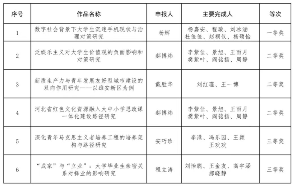 师生的6个项目获奖,其中,一等奖1项,二等奖3项,三等奖2项。本次调研大赛紧紧围绕保持和增强共青团政治性、先进性、群众性这一根本目标,广泛汇聚各方智慧,着力破解一批当前制约青少年成长发展、影响共青团改革与建设的重点难点问题。自2024年7月启动以来,永利