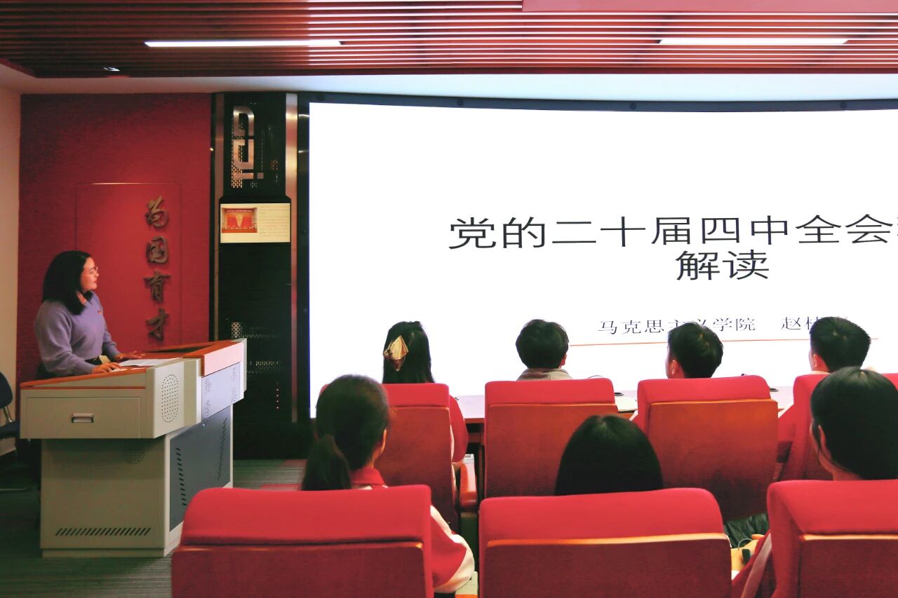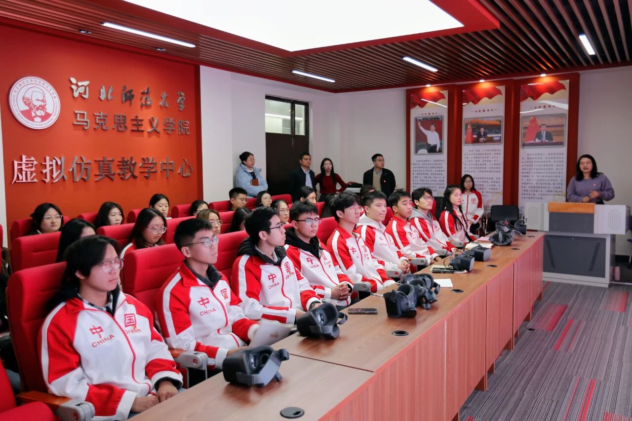 在虚拟仿真教学中心,团员青年佩戴VR设备,步入“中国改革开放史”云展馆,沉浸式体验改革开放波澜壮阔的历史进程。通过虚拟现实技术,同学们“走进”历史现场,直观感受中国特色社会主义制度的实践伟力与时代价值。思政课教师赵桂梅结合马克思主义理论专业背景,围绕党的二十届四中全会精神与改革开放的内在逻辑展开深入讲解,引导学生理解制度创新与青年使命的深刻联系,推动“以学促行、以行践知”理念入脑入心。