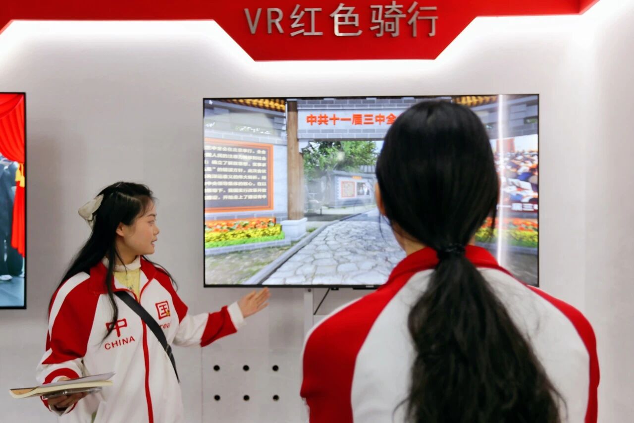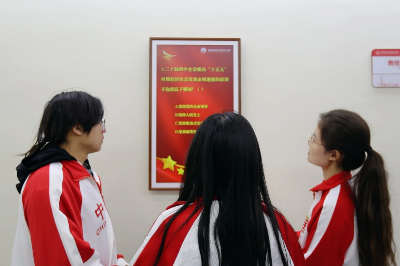 在VR红色骑行区,同学们以骑行闯关方式回溯改革开放关键节点;在AR体感交互区,大家跟随习近平总书记的考察足迹,感悟国家发展的战略擘画。活动现场还设置了“党的二十届四中全会精神”知识竞答环节,团员青年分组抢答、协作解题,展现出扎实的理论素养与高昂的学习热情。互动式、体验式的学习模式,让理论从书本走向实践,从“指尖”融入“心间”。